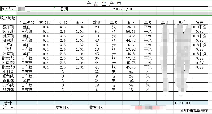 上图看出来墙板+线条一共是:15120元左右