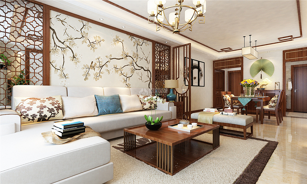 比方中式风格一般偏爱木元素,原木色在中式风格中经常运用。在选择集成墙板木纹系列,从墙面到吊顶都用同一系列,地上则能够用相同色或相近色的实木地板。