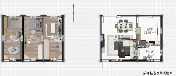 户型:三室一厅一厨一卫